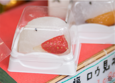 本社の大藤が日暮里に店を構えてから60年以上、以来近隣の皆さんに支えられてこの街に根付いています。私は赤坂や箱根の和菓子屋で修行し、5年前からこちらで製造を任されているのですが、都内で交通の便も良く若い人たちも多いのに、ほっこりしているというか、本当に人情の温かさを感じる街です。よく近所のお客さんから差し入れをもらったり、最近では日本の下町の良さに気づいた外国の方もよくお見えになります。 妖怪大福のコンセプトが「谷中の墓地からやってきたいちご好きな妖怪」ですから、この街を離れるわけにいかないんです(笑)。大福の食品サンプル(※)も女性を中心に人気があり販売もしているほどで、これからも日暮里の街を象徴するお菓子として、多くの人にかわいがられてほしいと願っています。