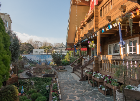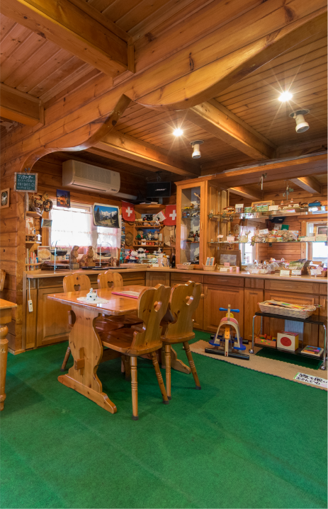 自然の中でみんながほっとできるスイス風のカフェを作りたくて、1998年にこの店をオープンした。バルコニーのブランコや店内に子供用の玩具を揃えたり、お母さん達のリラックスの場所として、小さな子どもを持つ親子連れのお客さんからも、すごく喜んでもらってる。それと毎月1回は、お店が休みの日に店内と庭を無料で開放するデニーランドっていうイベントをやっているんだよ。