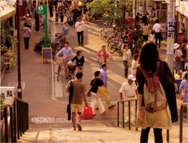 JR山手線と京浜東北線、京成本線の停車駅であるとともに、2008年に開通した「日暮里・舎人ライナー」のターミナル駅となった日暮里。駅ナカ施設の「エキュート日暮里」をはじめ、駅前の再開発によって誕生した3つのビルからなる「SunMarkCity」には、商業・医療など日常の暮らしに便利な多彩な商業施設が集まっています。また、「日暮里・舎人ライナー」新駅とをつなぐデッキが整備され、エレベータによるバリアフリー化も行われるなど、駅の東西を結ぶ回遊性と利便性が高まりました。