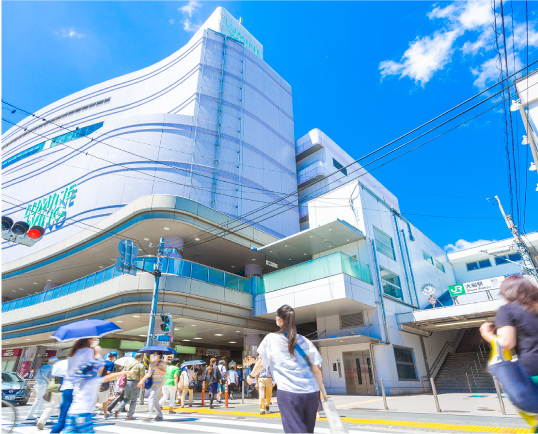「大船」駅周辺では、いくつもの大型商業施設とともに、地域の暮らしに密着した商店街が賑わいを見せています。かつて「大船田園都市」計画や「松竹大船撮影所」開設などにより発展してきた街は現在でも、撮影所の跡地に鎌倉芸術館や鎌倉女子大キャンパスが置かれ、文化・教育の薫る場所に。市の行政センターや総合・救急病院などの医療といった施設の揃う安心感、大船観音や鎌倉中央公園、日比谷花壇大船フラワーセンターなどの潤いも身近な環境です。