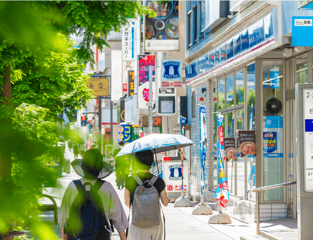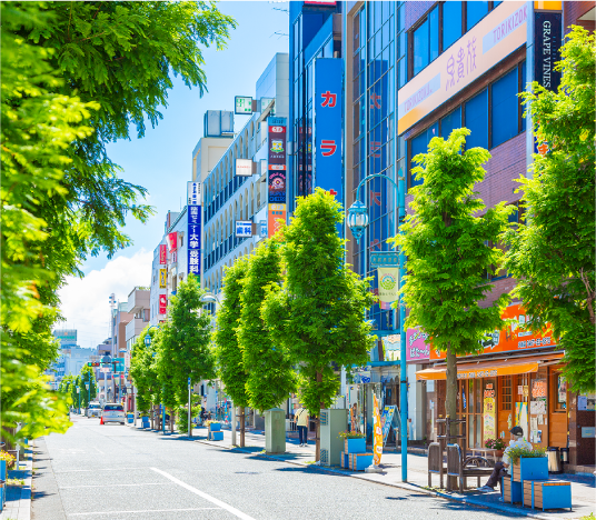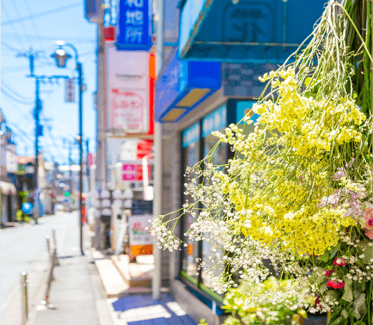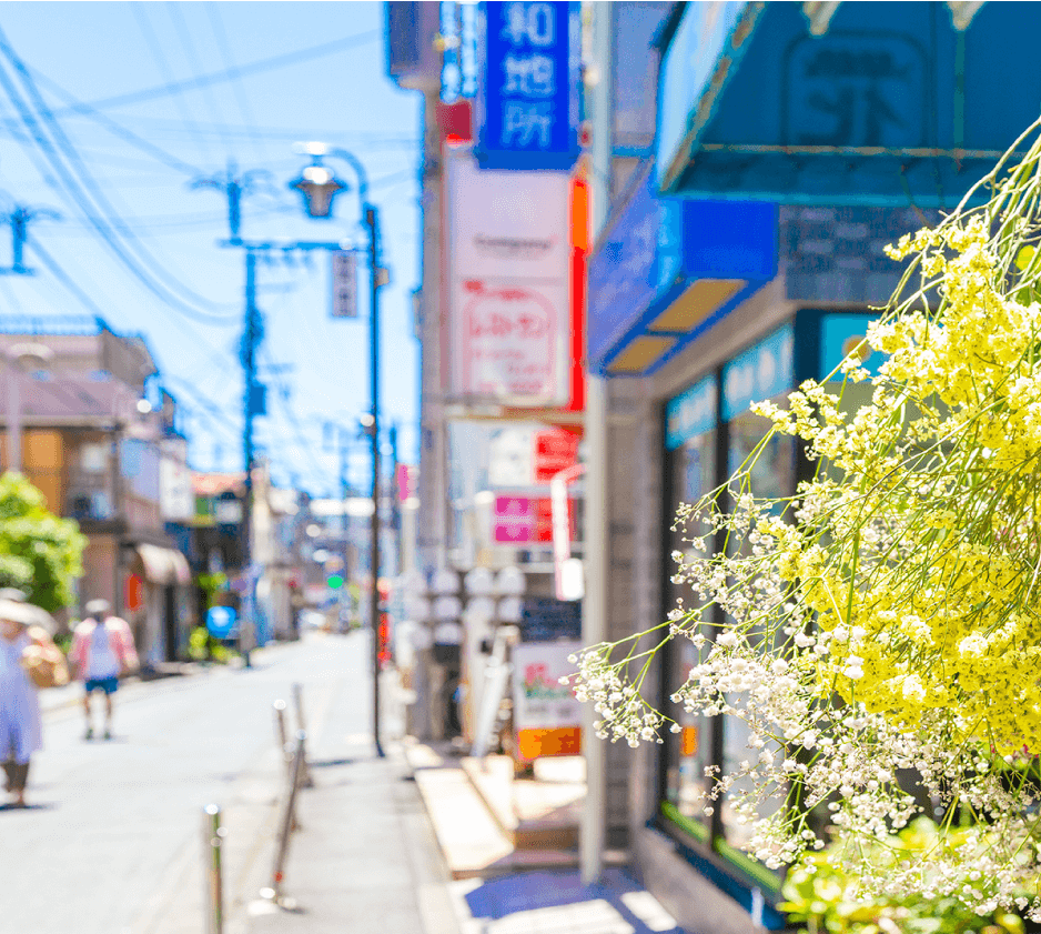 大船駅の東北側に広がる「大船商栄会」。駅前の交差点から東に延びる「芸術館通り」と「西友通り」を中心に、ドラッグストアや飲食店、銀行などが並んでいます。生活に便利なお店と、昔ながらの定食屋さん、八百屋さんなどが共存している商店街です。