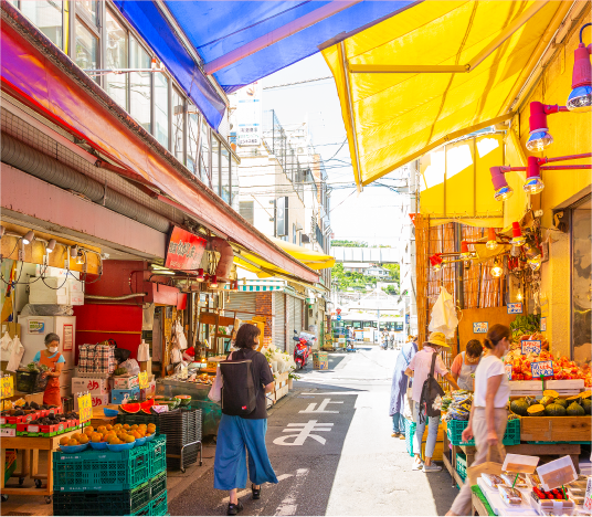 大船駅から東側、松竹ショッピングセンター、鎌倉芸術館などに向かう途中にある「湘南一番街商店街」。かつて撮影所で賑わっていた往時の大船の雰囲気を残す飲食店や、若い世代がオーナーをつとめる個性的なお店が数多く並んでいます。