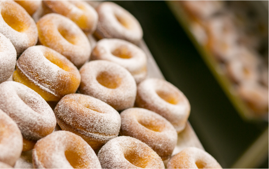 1階はパンとケーキ、2階はレストランの地元では有名なお店。2009年にオープン以来、本格的なパンと洋菓子が買える店として地元の人々に親しまれています。パンもケーキも品ぞろえがよく、ロンロンという焼きドーナツが人気です。