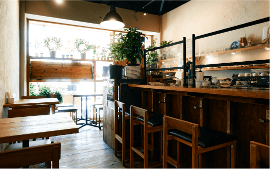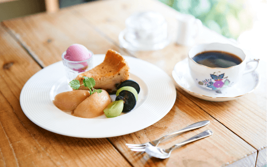 ヨーロッパの路地裏にあるようなカフェ。クラシックが流れるお洒落な店内では、炭焼きの自家焙煎コーヒーや日替わりの自家製ケーキが味わえます。また、ビーフシチューやパニーニなどの食事メニューも揃っています。