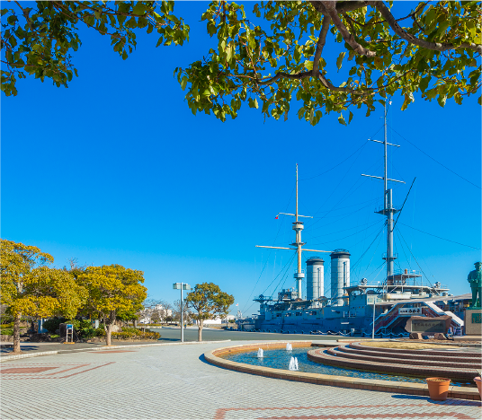 京急本線「横須賀中央」駅周辺からJR横須賀線「横須賀」駅にかけた一帯は、市役所や神奈川県合同庁舎などがある三浦半島地域の行政中心地。また、商業地としても全国のまちづくりのモデルとなった三笠ビル商店街や、日米の雰囲気が交じり合う独特のドブ板通りなど多くの商店街が発展し、いくつもの大型ショッピングセンターがあるなど、暮らしやすい環境が整っています。幕末の黒船来航以来、日本における近代工業の礎が築かれ海軍の一大拠点となるなど国際貿易や異国文化の窓口として栄えてきた、独自の文化を継承している魅力あふれる街です。
