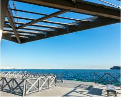 ヴェルニー公園隣接、軍港を一望できるスポット。エリア最大規模の“食”集積ゾーンなど100を超える店舗、シネマコンプレックスやボウリングも楽しめるショッピング&レジャー施設です。