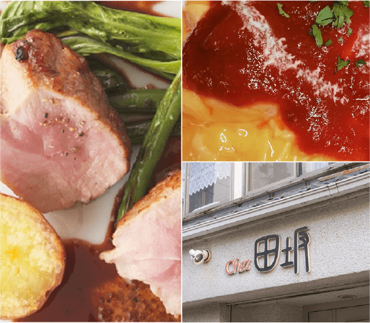 1976年創業、路地裏に佇むフランス料理店で、1階席は半個室、2階席は大正モダンの落ち着いた雰囲気。ランチタイムでは、肉・魚料理のランチやオムライスも人気。ディナータイムは、コース料理を主体にアラカルトメニューもあり、さまざまなシーンを演出できます。